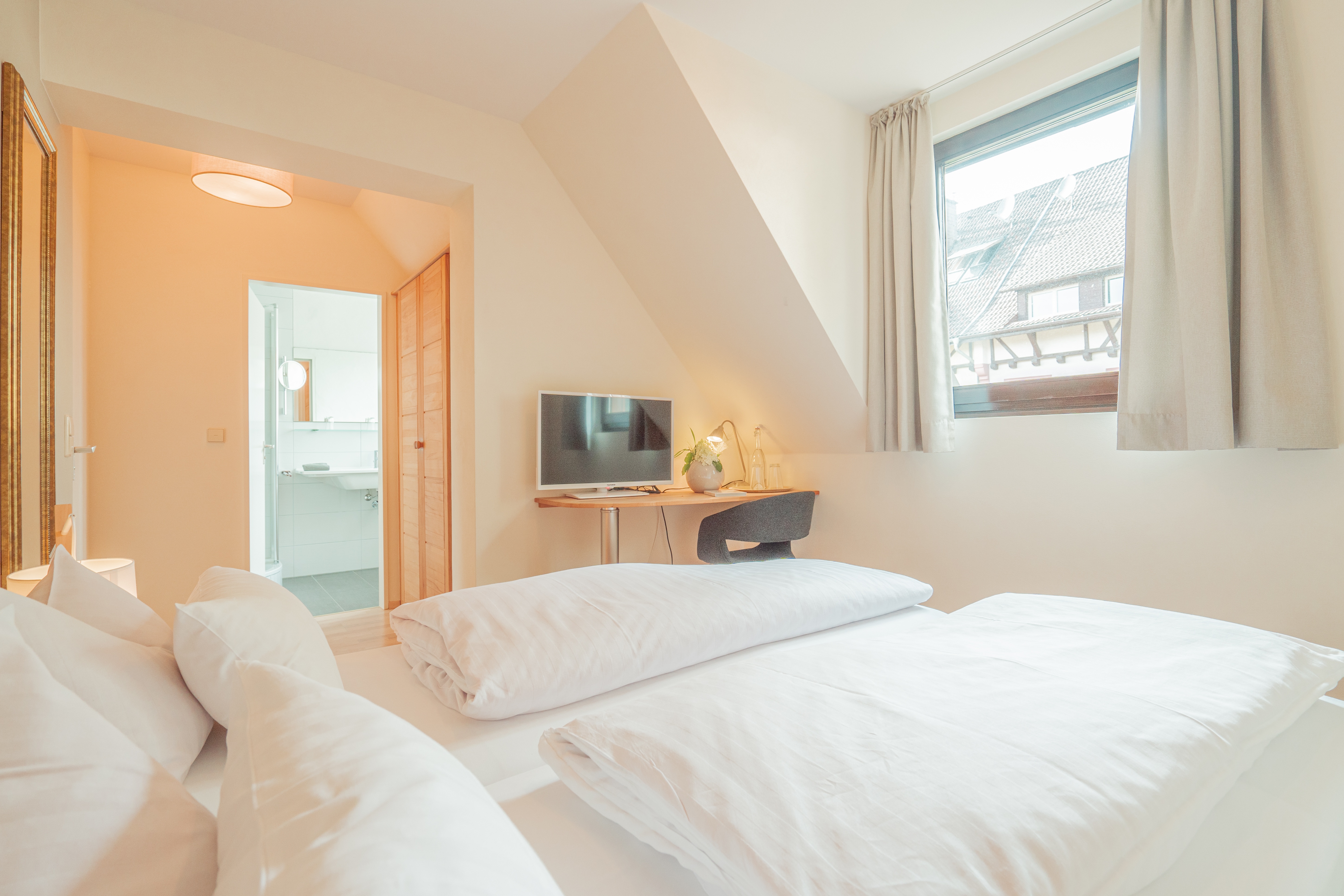 Einfach gemütlich: Unser Schwarzwaldzimmer ist die richtige Wahl für alle, die ein besonders günstiges Preis-Leistungs-Verhältnis suchen – Dusche, WC, Fön, Telefon, TV und Radio gehören natürlich dazu.